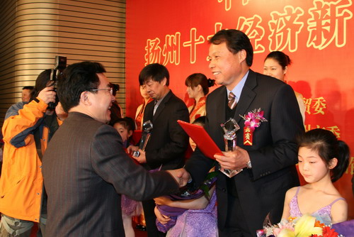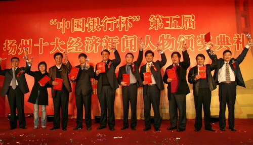 一年一度的十大經濟新聞人物;評選,堪稱揚州經濟奧斯卡;。 3月17日,由揚州市經貿委、揚州日報社主辦,團市委、揚州晚報、揚大經濟學院承辦的中國銀行杯;揚州十大經濟新聞人物;頒獎典禮在迎賓館隆重舉行。市委常委、宣傳部長袁秋年,市人大常委會副主任孫永如,副市長王玉新,市政協(xié)副主席朱正海出席頒獎典禮。